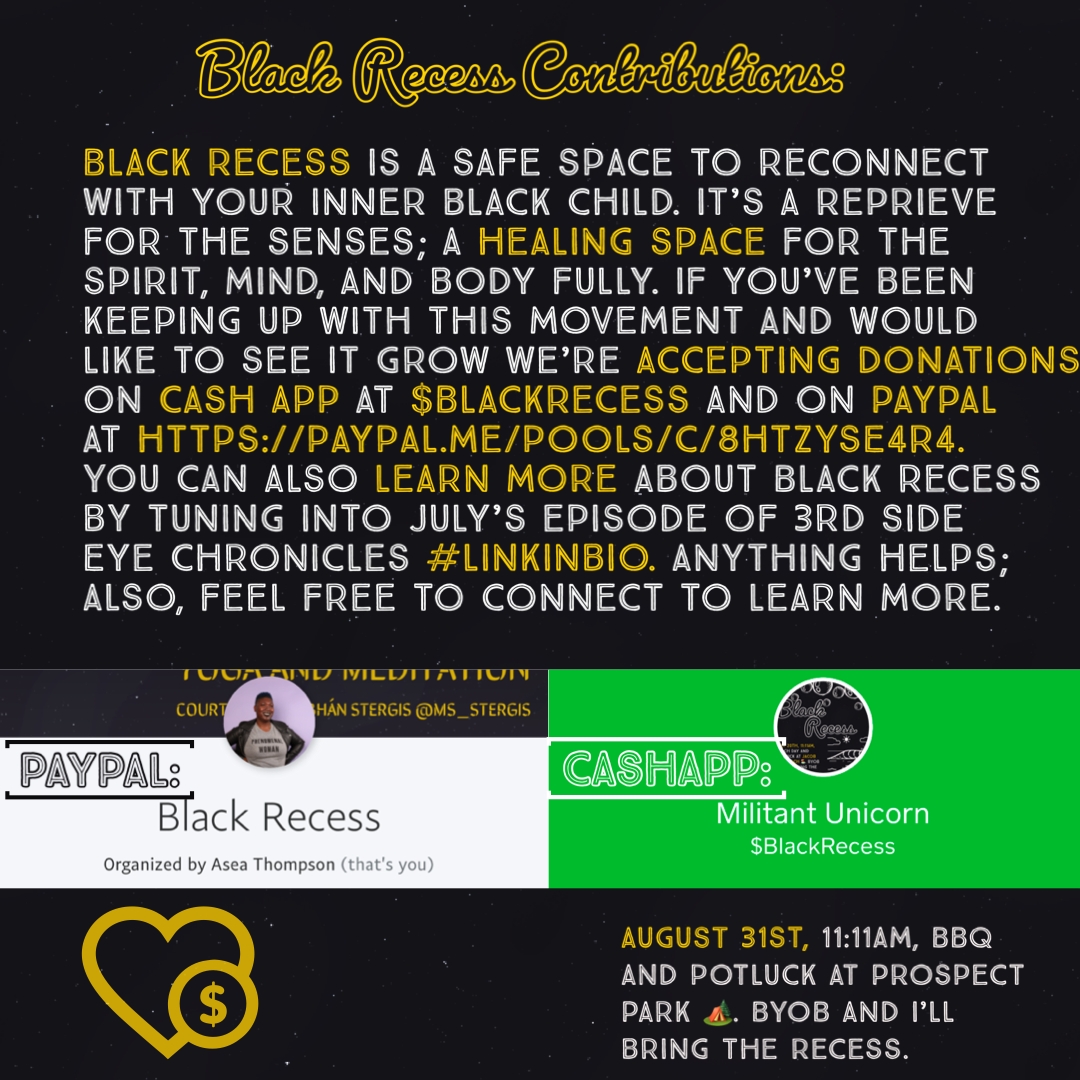 “Black Recess© was a safe space for black folks, from any background to come let their hair down, unwind, fellowship, and release.