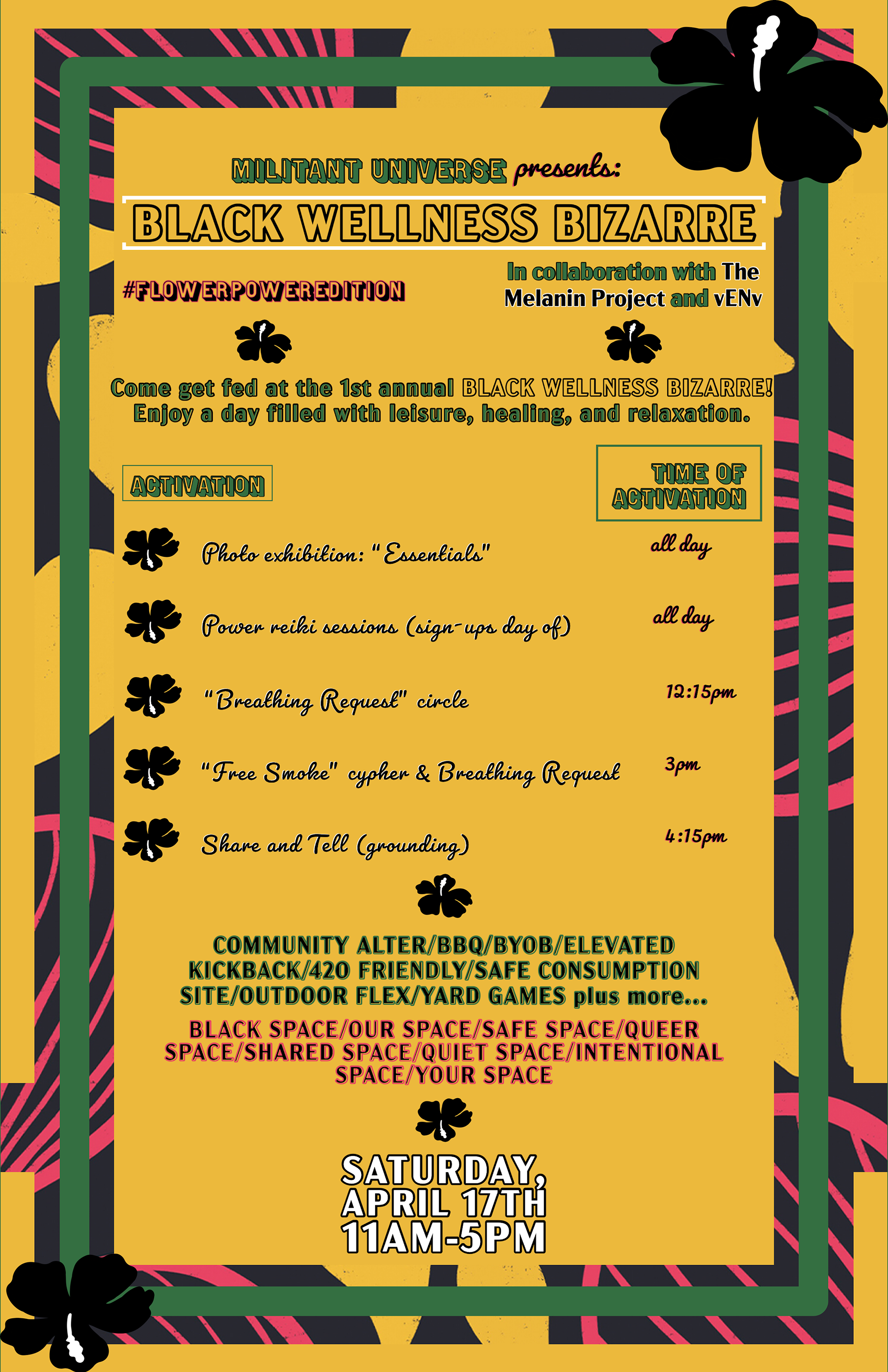 I invite participants to a well-curated, unconventional, outdoor/indoor/virtual ritual space where we engage in healing and leisure activities. I refer to Black Recess© as a ritual space because I intend for the event to reflect the depths of our intentions and to serve as a magical playground for our inner child.